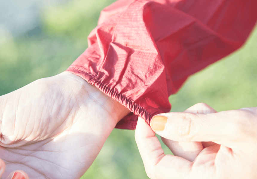 袖口には部分的にゴムが入っているので、伸縮性があり、袖をサッとあげた時にもピッタリフィットし、ずり落ちることがないのでとても重宝します。もちろん風の侵入も防いでくれます。