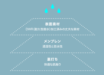 カッパやレインスーツなどにもある防水・透湿性を持っています。